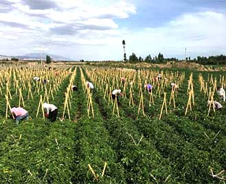 瓜州基地主要以生產(chǎn)加工型番茄為主,土壤肥沃、光照充足、晝夜溫差大、降雨量少、病蟲害輕、水源充足。